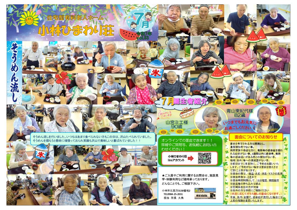令和7年7月度施設通信を更新いたしました。